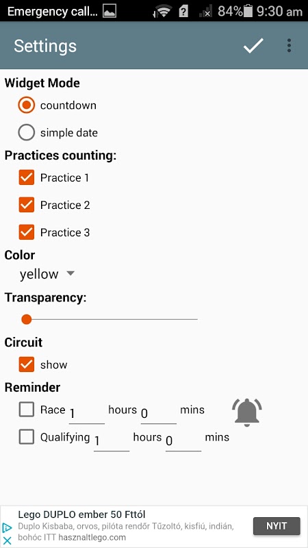4. 更改设置并点击顶部的完成图标以保存小组件设置。