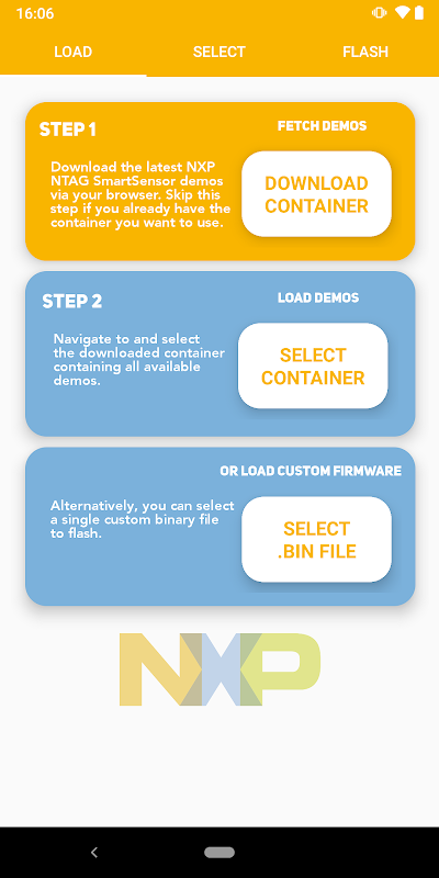 您可以从恩智浦提供的演示列表中进行选择,也可以在应用程序中制作您自己的演示。选定的固件映像将通过 NFC 接口发送到 NHS31xx IC。下载完成后,第二阶段引导加载程序不再可用:IC 被复位并执行新的应用程序。
