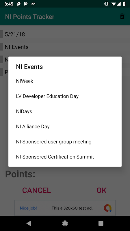 Keep a record for all of the times you have earned NI Recertification Points. A running total shows how much you have earned. Remember that you need 50 points to keep your LabVIEW or TestStand Developer or Architect certifications. This app can also e-mail your recertification point data as a JSON file.