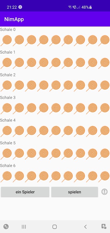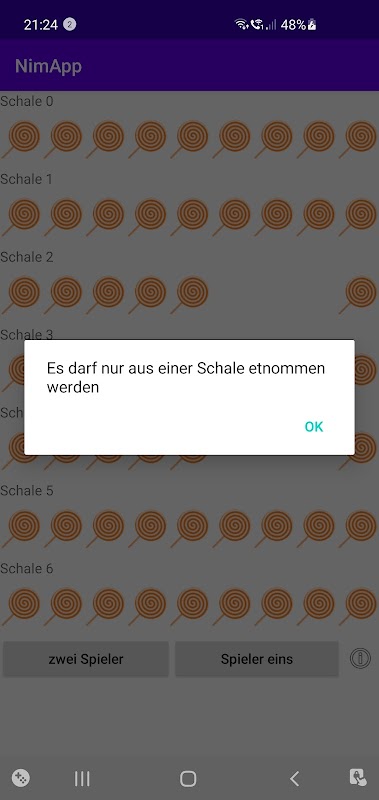 你那里有七碗糖果。从一个碗中取出任意数量的糖果。每走一步,你都必须至少吃一个甜食。还要确保每次粉扑只从一个碗中取出。