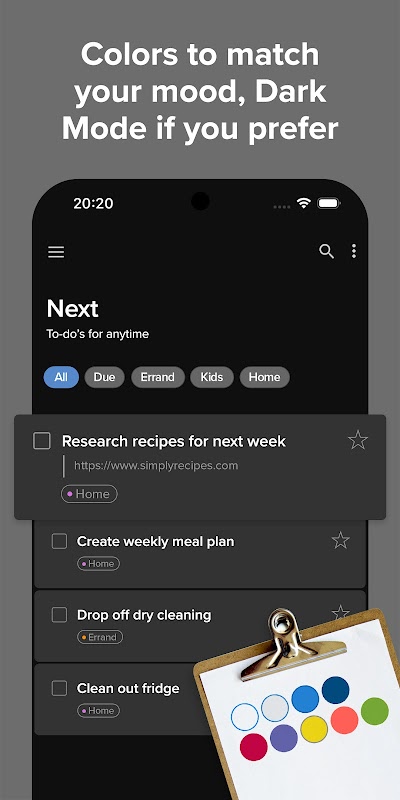* 使用专为 GTD 清晰化设计的智能视图,专注于当前最重要的事情。