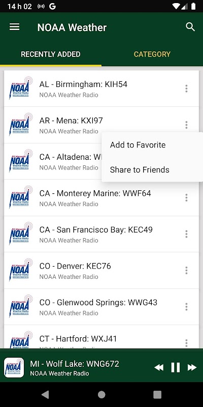 ✦ Save your favorite NOAA Weather Radio Stations