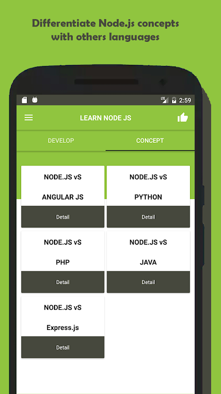 This app helps you to learn node.js easily as a guide to node js tutorial. Node.js is the most influential technologies in the Web development,we cover the basic topics as follows,