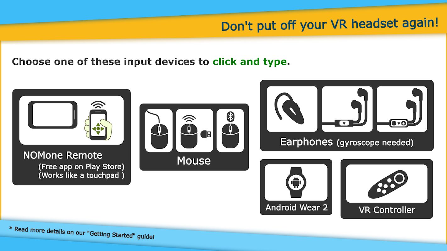 Surf the web 🌐, watch videos 🎞️ and read manga/novels 📖 directly on your favorite websites, in VR. Zoom until you need to look around to see more. Perform a fulldive and see how immersive it gets yourself. Our app works on almost any virtual reality viewer, like Google Cardboard, Virtual Box, Bobo VR...etc. GearVR is not supported, but can work with a hack. And Daydream is supported but not yet released. Stay tuned for it!