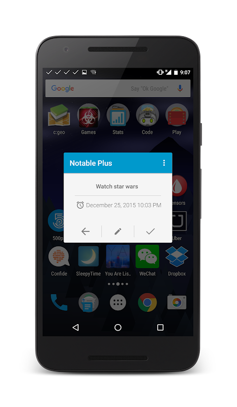 值得注意的设计有速度和简单一点,以及以下的最新材料设计准则。没有必要再回到主屏幕并启动该应用创建一个提醒,刚打开的通知,单击该快捷方式,并创建一个音符!