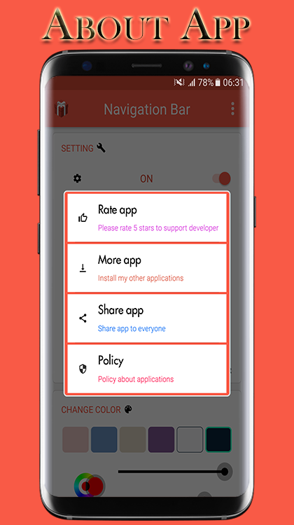 This app provides several features and colors to make awesome navigation bar.