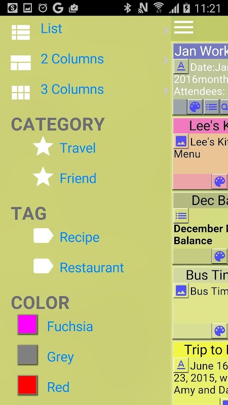 2. Add a feature that a note created on each category, tag or color screen is automatically set with the same category, tag or color.