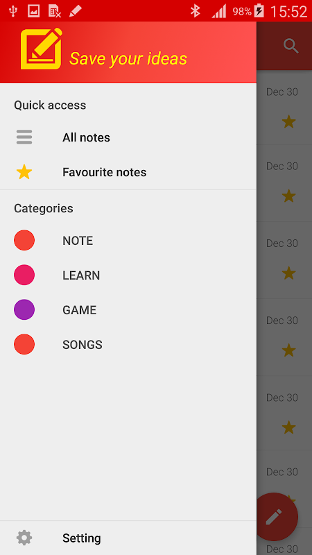 - 创建和读取您的笔记,当你不回到主界面和开放的注意应用程序打开其他应用程序。