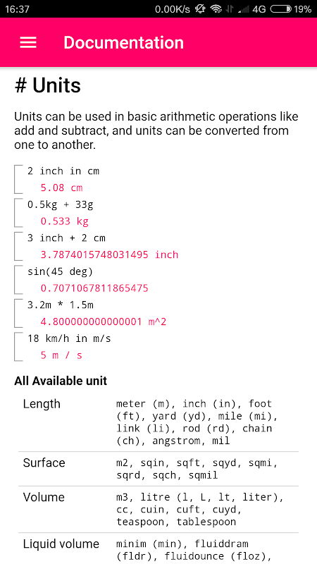 With Note maths calculator you can convert a unit to another unit like "3 meter to yard", "meter in yard", "5 meter + 6 yard". and so many Available unit you can work with, like Length (m,in,ft,yd, etc), Surface (m2,sqin, etc), Volume, Liquid Volume, Angles, Mass, Electric current, Temperature, Force, Energy, Power, Pressure, Electricity and magnetism, Binary. calculating and converting a unit made easy with note math calculator