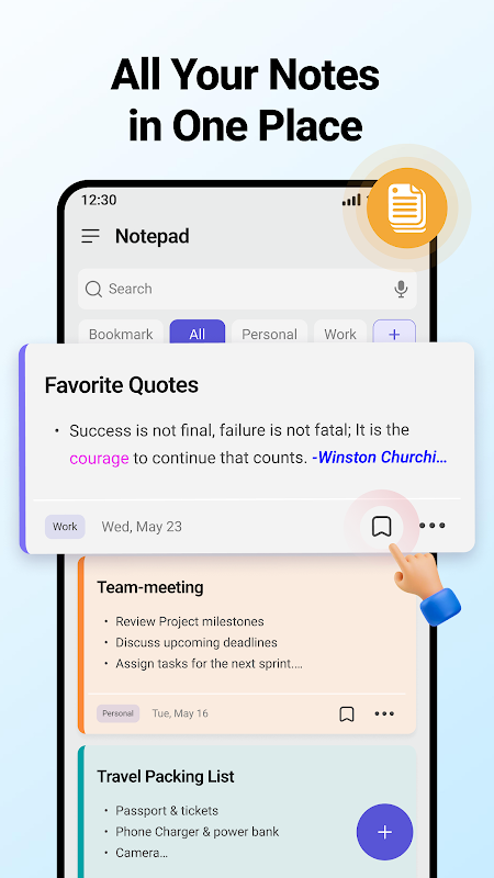 从记录密码到设置每日提醒或撰写快速备忘录,记事本专为现实生活打造。它是您思考、计划和记忆的安全空间——一切尽在一个应用中。