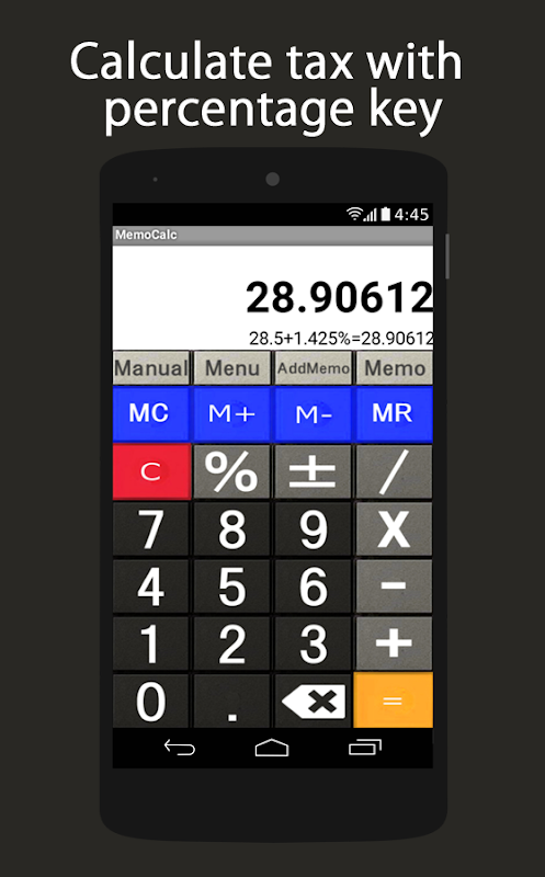 “M +”(Memory Plus):将计算器上显示的号码添加到内存中。