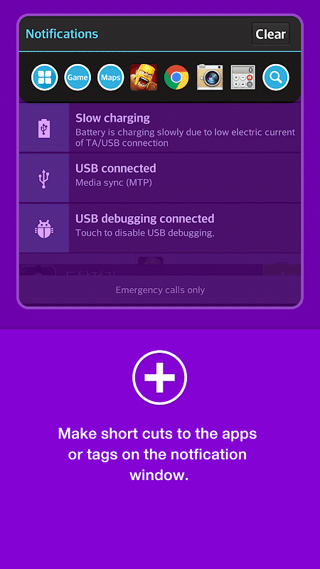2.启动常用的应用程序和标签迅速通知栏上 - 快速帮助您通过注册它们的通知栏上的快速启动您的手机和标签上安装常用的应用程序。刚刚拉下通知栏,而你是玩游戏或使用其他应用程序。你并不需要按下home键,并期待为在主屏幕上的应用程序图标。刚刚拉下通知栏,并启动应用程序,这比移动到主画面,启动应用程序要快得多。很快其实质是为Android设备提供安全的应用程序管理器!