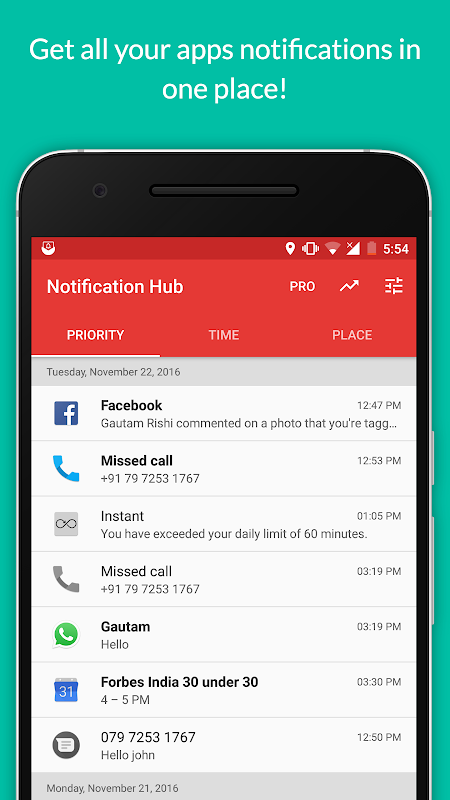 - All your apps notifications prioritised in one place