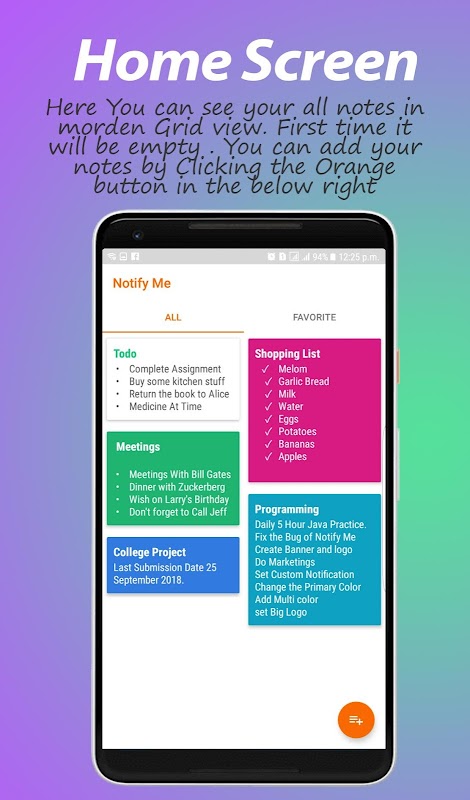 As we said Notify Me is totally user-friendly notepad app. When User saves a note, he could modify everything of that note, Like color, favorite options, modify note Also can set reminder option by tapping on the note.