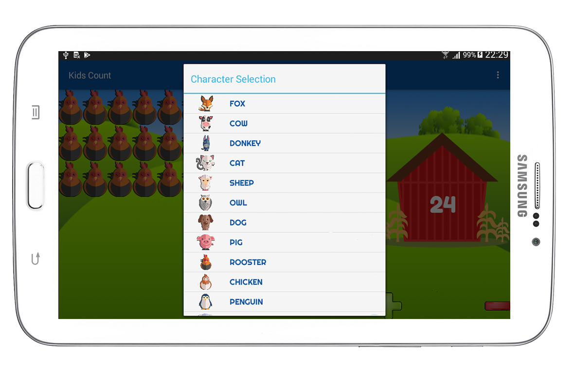 The current icon that the kids use to learn counting is also visible on the barn and by clicking on the animal icon you can select any other available animal icon to help your kids learn better.