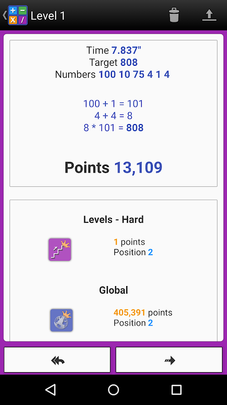 其目的是要达到六个基本的算术运算结合数字目标数字:加法,减法,乘法和除法。当你达到目标数你去到一个新的水平。