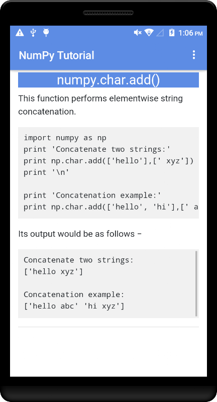 This tutorial explains the basics of NumPy such as its architecture and environment.