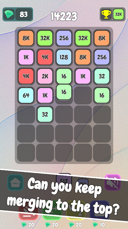 Merge the same number blocks to create bigger numbers and earn points. Start from 1 and see how far you can go!