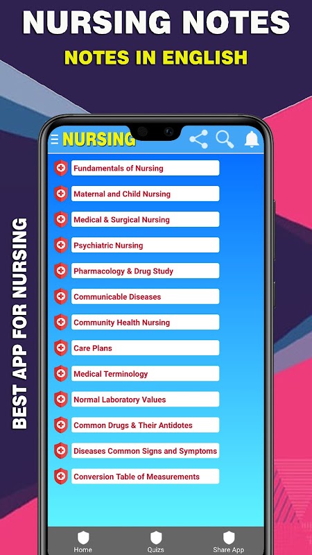 此应用程序适用于所有类型的护理检查。我们希望这个应用程序对护理竞赛考试有所帮助。使用此应用程序后,请分享您的经验。此应用程序适用于 AIIMS、PGIMER、JIPMER、ESIC、DSSSB、RRB、KERALA PSC、RUHS、ILBS、KARNATAKA PSC、HPPSC、HPSSC、RPSC STAFF NURSE、NCLEX、ANM、GNM、B. Sc。护理、学士前科学入学考试、制药和所有医学课程。
