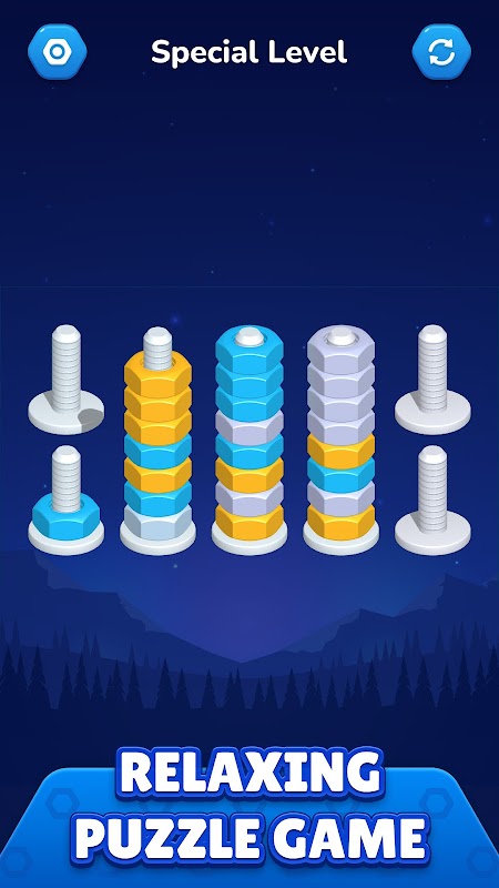 挑战您的大脑,享受数小时的乐趣,将色彩鲜艳的坚果排列到螺栓上,逐步掌握颜色分类的奥秘。