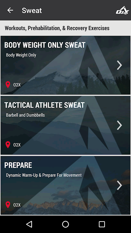 The O2X Human Performance mobile app provides daily access to workouts, nutritional information, and mental performance tips from our science-backed Eat. Sweat. Thrive. methodology. With O2X, you can make daily lifestyle changes that lead to sustainable, long-term improvements.