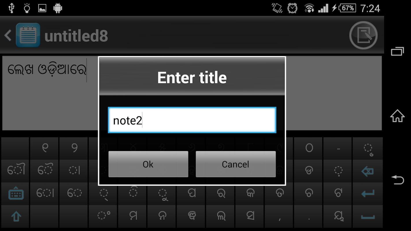 Odia Notepad is a simple text editor. It supports UNICODE text only. This app will show Odia characters in all latest Android based Mobiles and tablets.