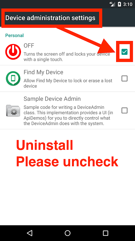 您必须[设置] - > [安全] - > [设备管理员]才能禁用应用程序