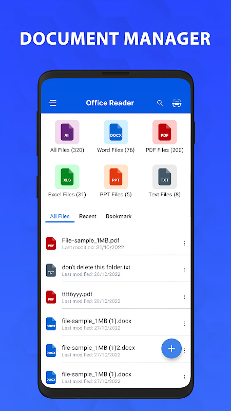 此 Office Reader - Docx 阅读器应用程序与 Word Office 文件完全兼容,包括 Word、Excel、Docx、文件 .ppt 和 txt 文档、PDF 文件。所有文档阅读器和编辑器。
