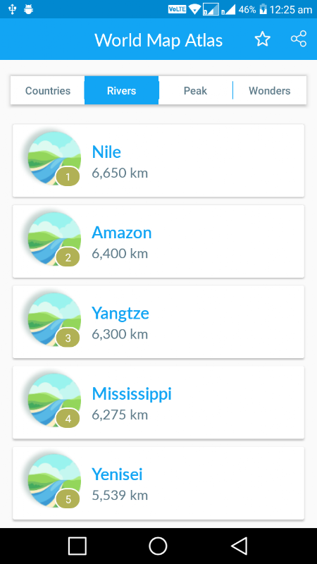 我们为您带来了关于世界的最有用的应用程序之一,却丝毫不失真。您会惊讶地看到某个国家的位置和区域。无需浪费任何时间,就可以下载此世界应用程序并了解世界地理。