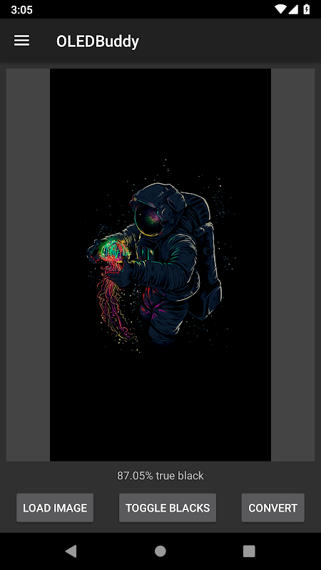 使用OLEDBuddy,您可以轻松打开图像,查看哪些像素为真黑色,所有像素的百分比为真黑色,如有必要,可轻松将低值像素转换为真黑色。