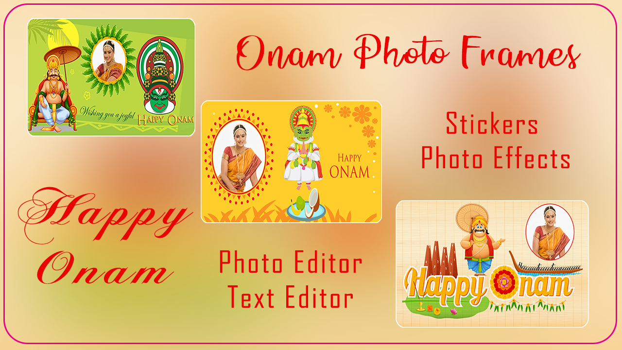 Onam Photo Frames to spice your photos with photo effects, stickers and messages & quotes.