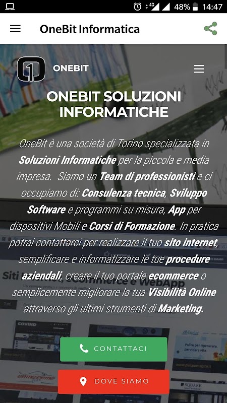 ONEBIT是设计用来快速查看都灵的网站公司ONEBIT的网站的应用程序是由专业人士专门从事IT解决方案,网站,软件咨询及交钥匙产品成立了一家公司。专家在开发Android应用,并在都灵和皮埃蒙特的客户咨询服务。