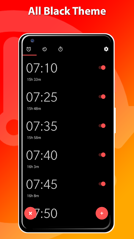 With OneClock you can set up to 8 alarms at once. You can change the number of alarms and time difference between alarms in the settings menu. It's also possible to add just one alarm.
