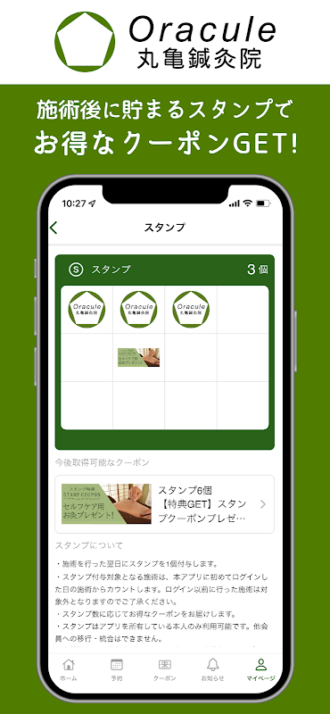 您可以通过该应用程序获取[Oracle Marugame Acupuncture Clinic]的最新信息和优惠。您还可以随时通过智能手机查看菜单、所需时段并进行预订。通过安装该应用程序,您可以更方便地使用【甲骨文丸游戏针灸诊所】。