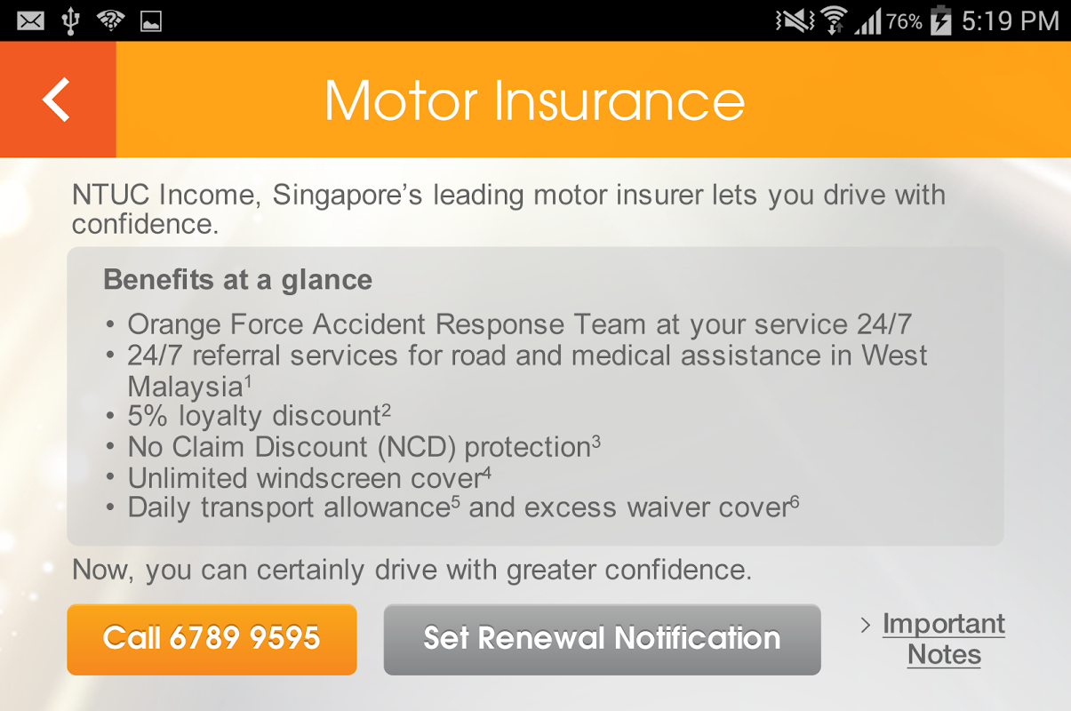 Never forget important road tax and motor insurance renewal dates with our alerts. To get a motor insurance quote, our customer service officer is just a tap away.