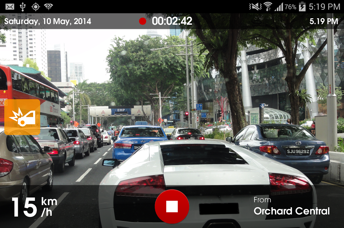 A smart mobile app for safe driving, Orange Eye works more than an in-car camera and renders emergency call assistance in the event of an accident without losing important video footages.