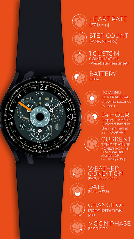OrbiCentric 是一款现代且信息丰富的表盘,具有许多经典元素。