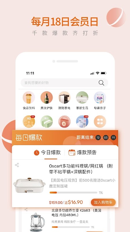 3. 每月18日会员日活动,爆款商品超实惠