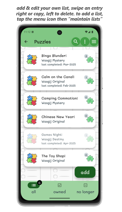 对于“其他”,要创建新列表,请点击菜单,维护列表,然后点击应用栏中的加号图标,并在对话框中完成详细信息。要删除列表及其所有相关条目,请点击末尾的删除图标;要修改列表名称,请点击列表开头的编辑图标。