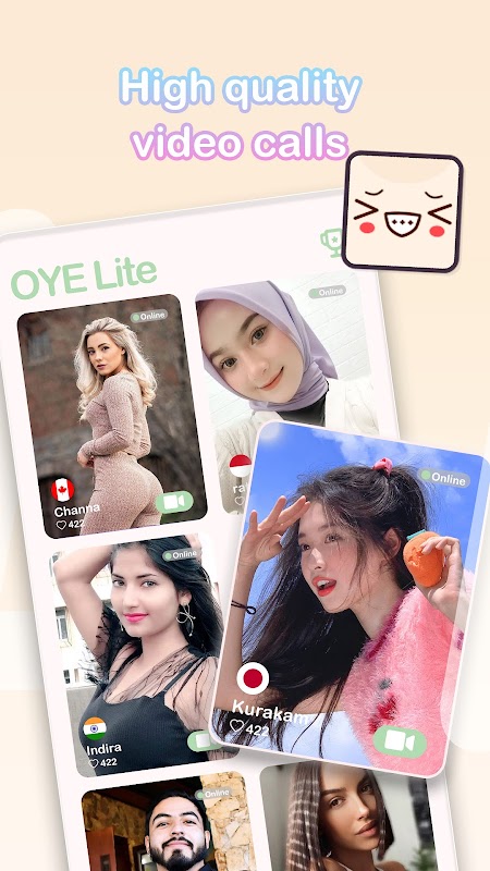 在 OYE Lite 中结交新朋友再简单不过了!只需移动手指,您就可以与来自世界各地的人会面并加入他们的实时视频聊天。