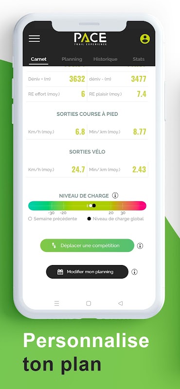 您的日志将允许您分析您的表现和进度,同时根据您的可用性以精确和完整的时间表控制您的日程安排!