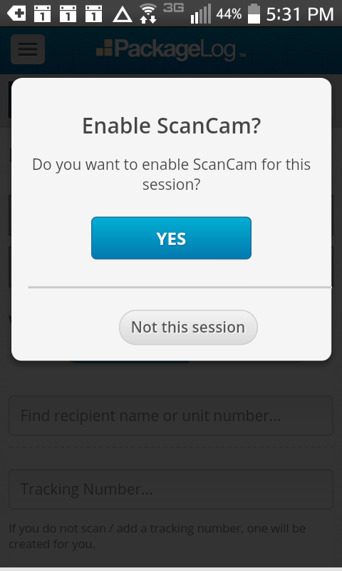 Turn on tracking number so you can ScanCam the tracking number for UPS, FedEx, or the US Postal Service and PackageLog will recognize the shipper and save the package tracking information for you and the recipient.