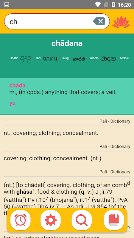 巴利语词典的单词搜索涵盖 1,000,000 个巴利语单词、同义词和反义词。