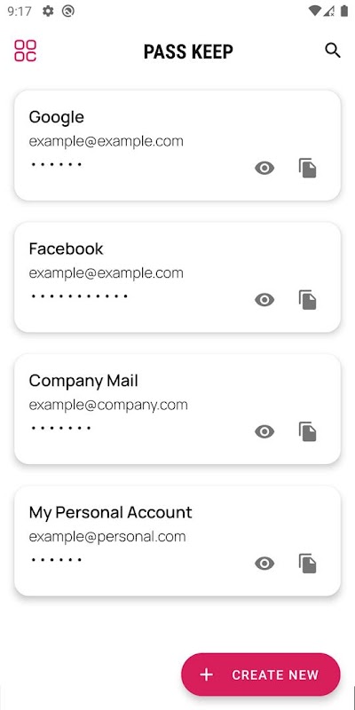 Pass Keep stores all your accounts and it's passwords in one place.