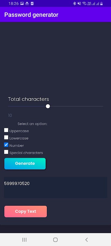 This password generator helps you to create a strong random password easily. No login is required to use this simple password creator. Just download this app and use it totally for free.