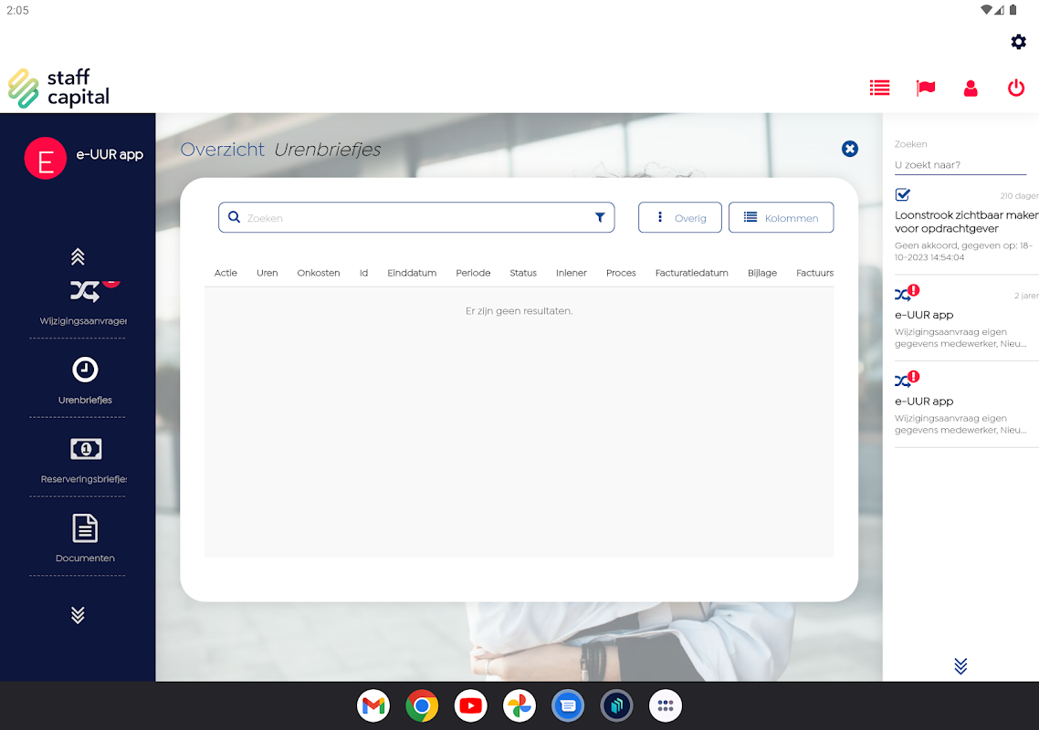 在easyoffice应用程序中,弹性工作人员、客户和中间人可以开始入职、创建任务、签署在线协议,还可以注册和批准工作时间。可以实时查看工资单、(保证金)发票和其他文件等文件。该应用程序还提供管理文档、个人数据以及疾病和康复报告的可能性。