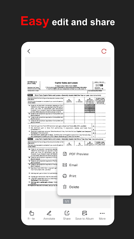 Document PDF Scanner 是一款方便的多合一应用程序,可将您的设备变成多功能办公工具。 轻按一下即可扫描、编辑、整理、打印和共享您的文档!