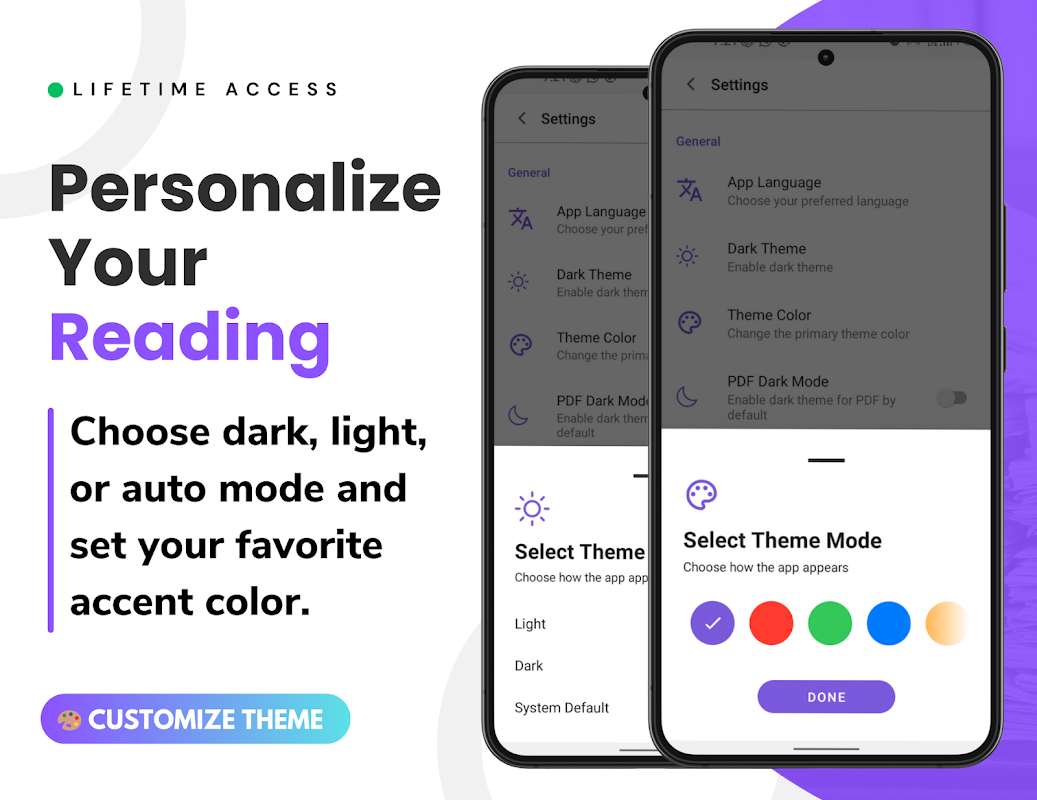 亮色和暗色主题,让您在任何光照条件下都能舒适阅读。