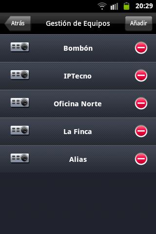 - Listado de equipos : Listado de todos los grabadores instaladores con su estado, IP y puertos.