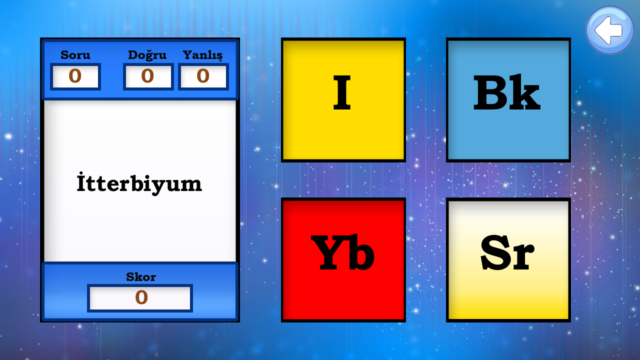 设计四种不同测试结构的游戏以促进化学元素的学习。用户可以在这里测试自己,并遵循元素中的成功得分和学习水平。